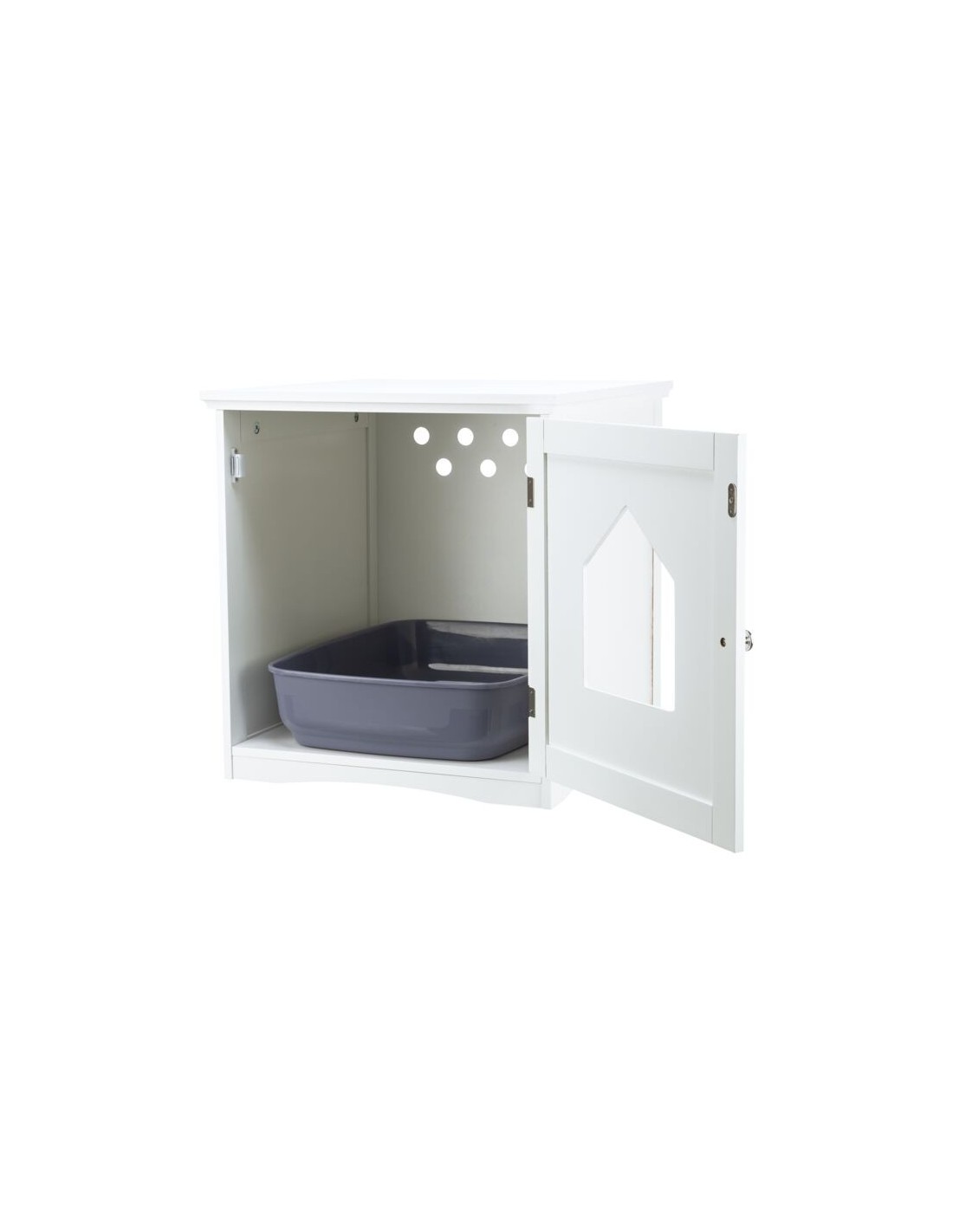 Celle-ci permet de cacher discrètement le bac à litière tout en empêchant les projections de litière. Elle peut également être utilisée comme coin repos pour votre chat. Grâce aux fentes de ventilation à l'arrière, elle assure une bonne circulation de l'air. De plus, la porte à fermeture magnétique garantit une utilisation pratique et sécurisée.