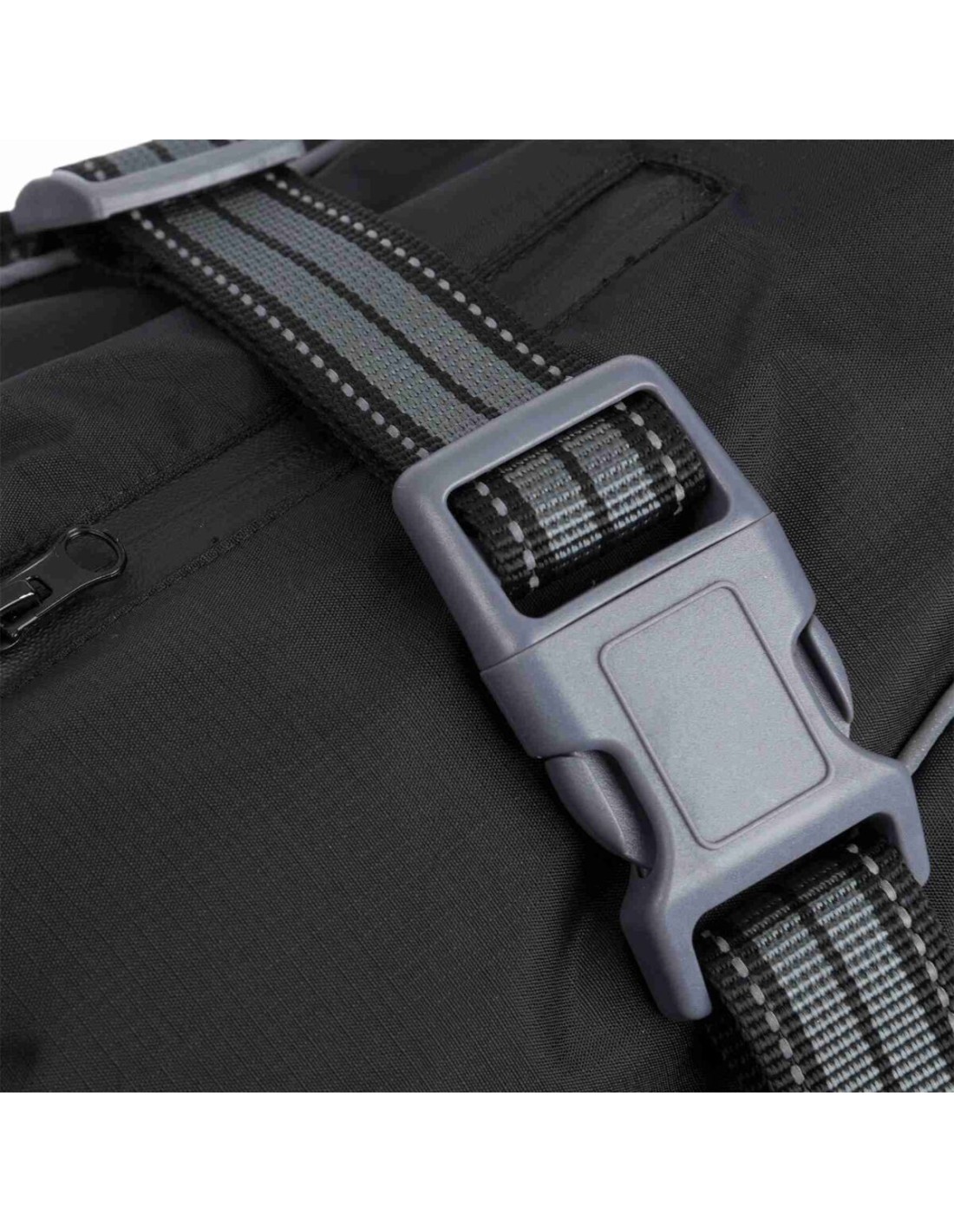 - peut s’utiliser avec un harnais en utilisant la fermeture éclair étanche placée sur le dos