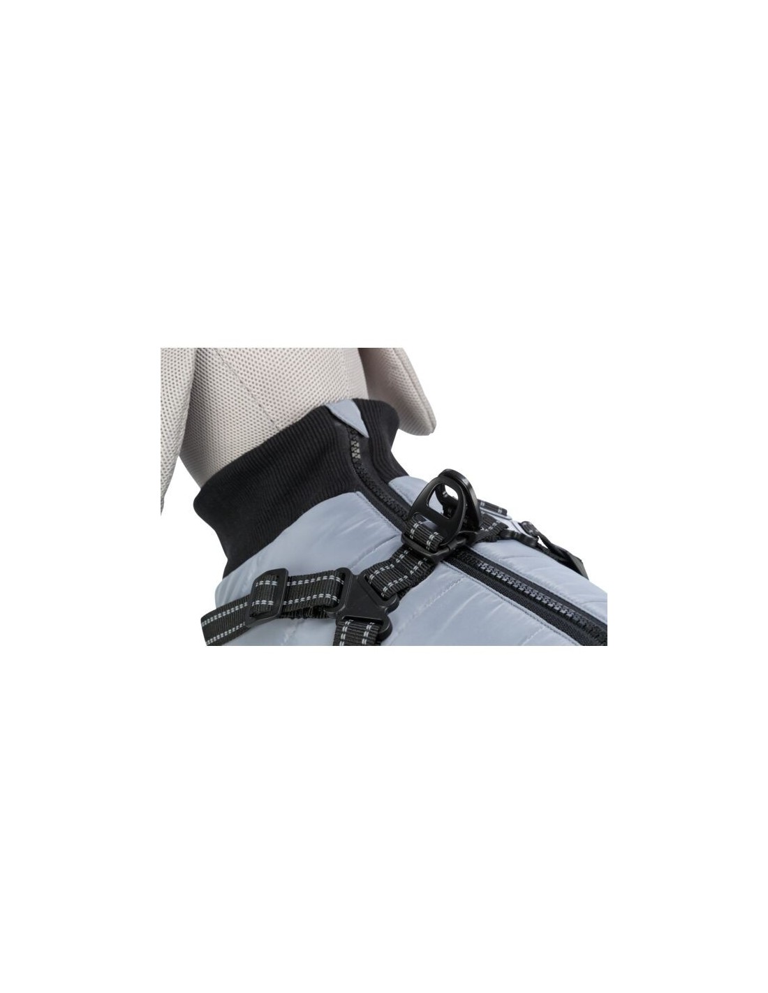 TRIXIELe manteau pour chien Trixie Pontis avec harnais gris est un manteau pratique, hydrofuge pour chien, avec harnais intégré.