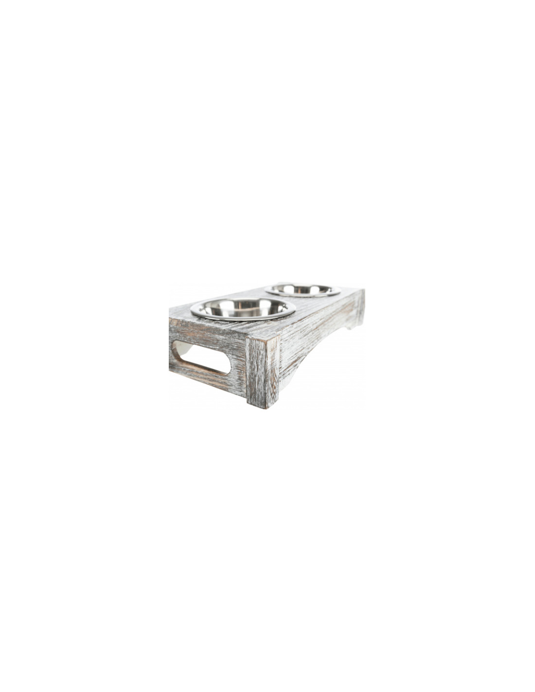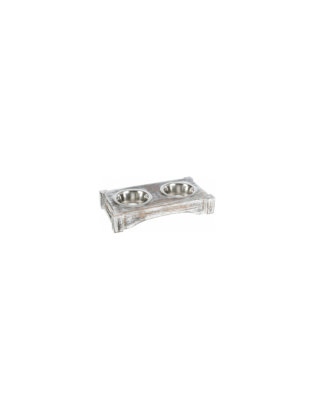 TRIXIESet de gamelle, bois/acier inoxydable TRIXIE, est destinée pour les chats et pour les petits chiens. 2 gamelles en acier inoxydable avec support, et support des gamelles en bois verni. Les pieds sont dotés de patins en caoutchouc anti-dérapants.
