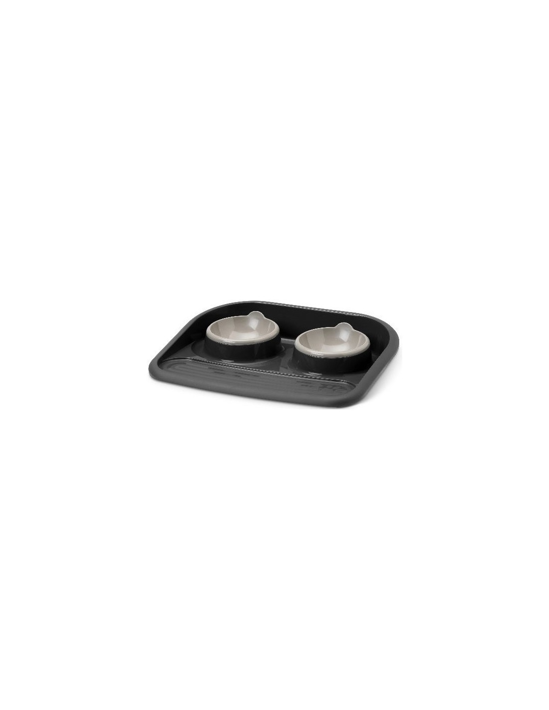 Plateau repas noir avec deux gamelles gris taupe amovibles de 300ml