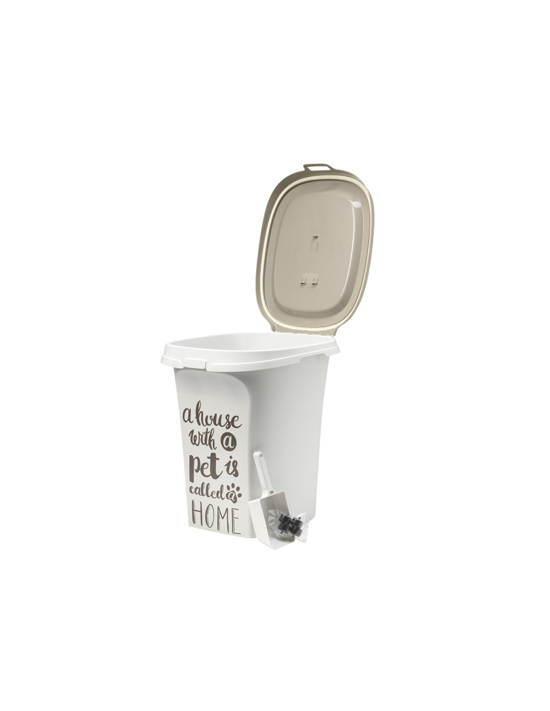 Une pelle doseuse fixée sous le couvercle permet de servir facilement les croquettes, sans se salir les mains.
