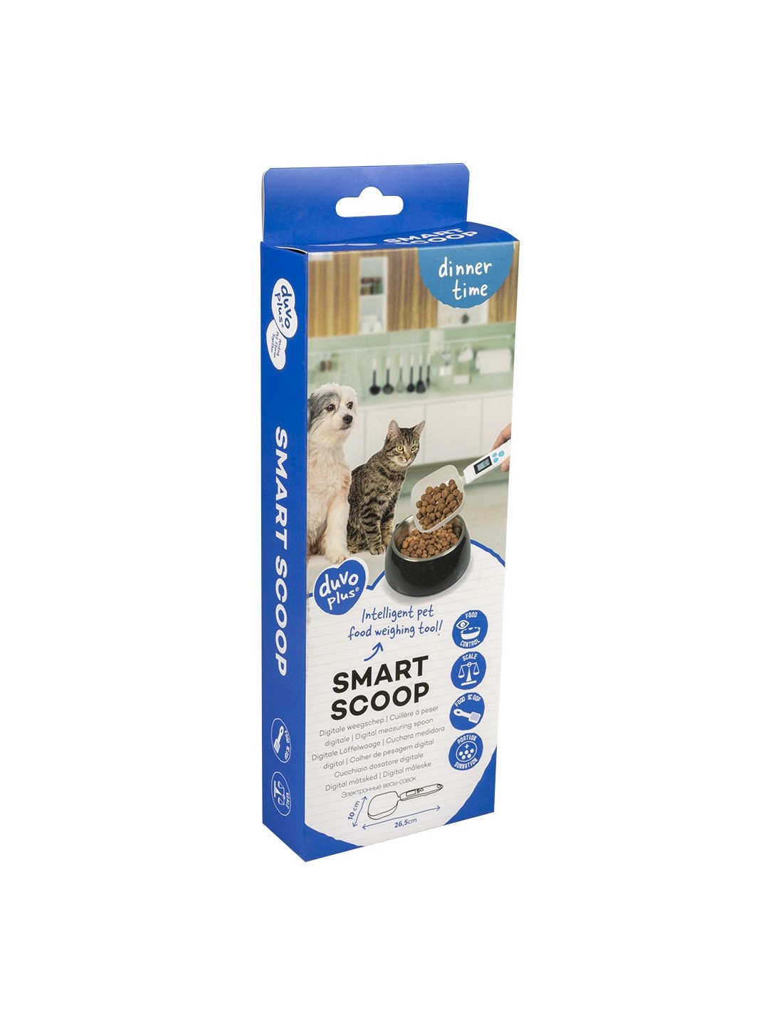 Avec la duvoplus Smart scoop, vous pouvez prendre et peser en même temps de la nourriture ou des friandises.