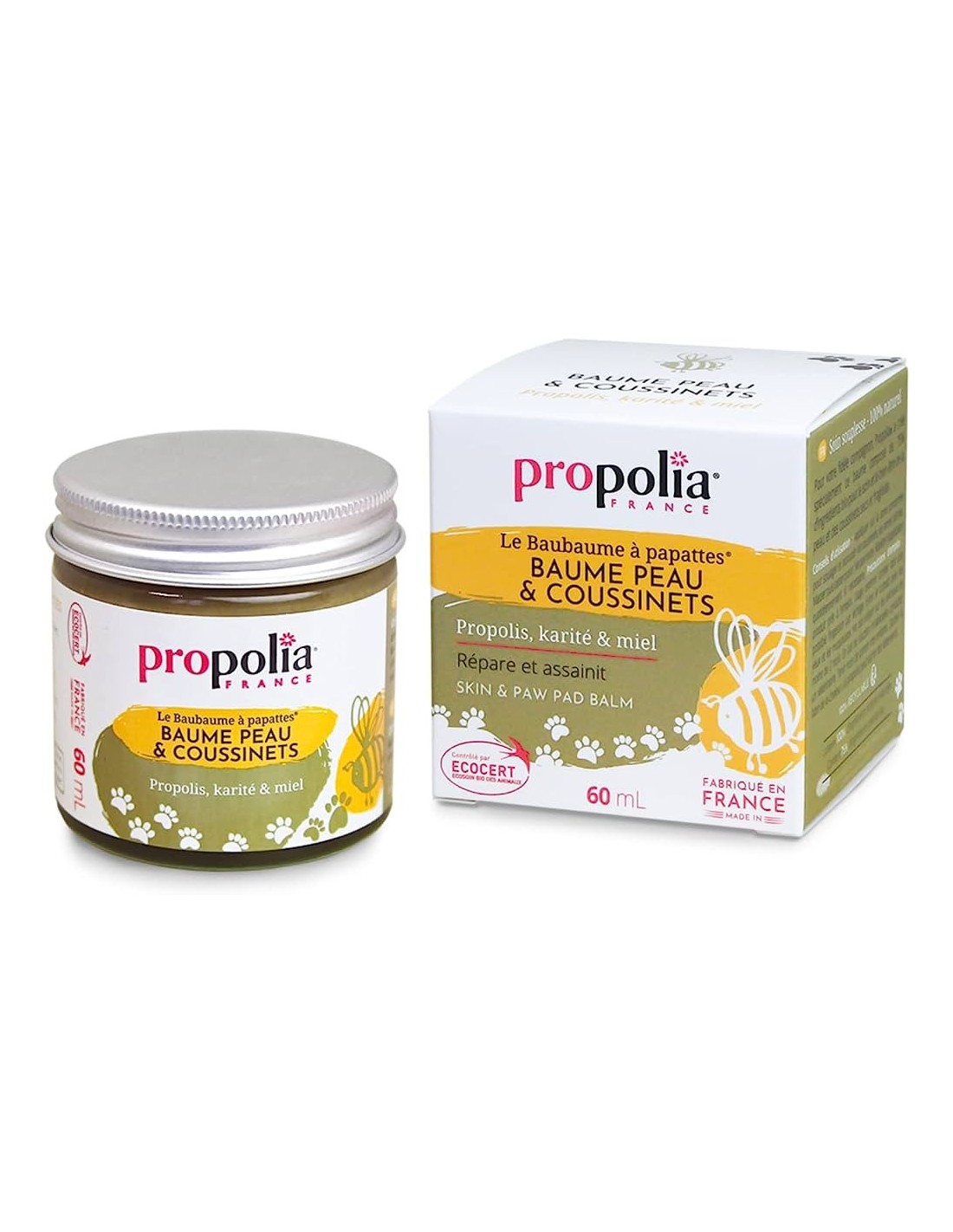 Principaux actifs: Propolis (10% d'extrait de propolis purifiée), karité, miel, huile de coco, cire d'abeilles.